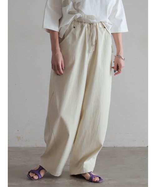 【FIL DE FER フィルデフェール】 2026 Summer Collection / PRE ORDER “品よくはけるイージーパンツ” コットンとリヨセルを混紡した、薄手のコーデュロイのような素材感のパンツ。 リヨセルを織り交ぜることでほんのりとした落ち感をプラス。 カジュアルながらも品のいいスタイリングに決まります。 裾のサイドに切り替えを入れ、ゆるくカーブしたシルエットに。 リベット、ハトメ、ヒモ先に使用した金具がアクセント。 洗濯:手洗い可 ※画像の商品はサンプルです。 実際の商品と色味、仕様、サイズ等が若干異なる場合がございます。 ※工場の生産の都合上、納期が変更になる場合がございます。 発送日の前後については予めご了承ください。 ※ご注文いただいた予約商品のお届け時期の確認は、注文履歴ページより行えます。