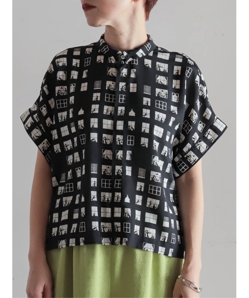【FIL DE FER フィルデフェール】 2026 Summer Collection / PRE ORDER “話題作りにも◎の楽しいモチーフ” 団らんしている人々やヨガをしている人、犬や猫の姿も。 マンションの窓をイメージした楽しいモチーフを、シックなカラーで作成したブラウス。 すっきりと見える小衿と、ショート丈のボクシーシルエットが特徴です。 ゆったりした袖口は、バックにタックを入れることで子供っぽくならず、動きやすさもアップ。 同柄でドルマン型のスキッパーブラウス(品番:10-1-06-212-6-1)もございます。 洗濯:洗濯機使用可 ※画像の商品はサンプルです。 実際の商品と色味、仕様、サイズ等が若干異なる場合がございます。 ※工場の生産の都合上、納期が変更になる場合がございます。 発送日の前後については予めご了承ください。