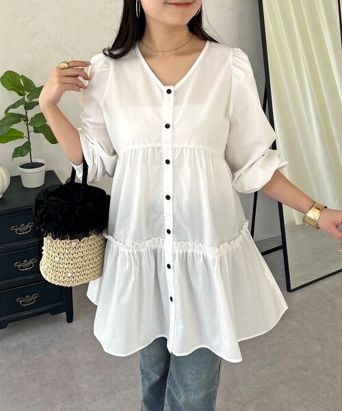 フリルが大人かわいいティアードシルエットのブラウス ●動くと揺れるティアードが華やかな印象に ●長めの丈で体型カバーもばっちり ●ブラウスとしても、羽織リとしても着こなせる、着回し力に優れた1着。 ●シンプルなボトムスと合わせるだけでパッと華やかコーデに ブラウス/ティアード/大人可愛い -------------------------------------------------------------- 生地の厚さ:薄め 伸縮性:なし 透け感:オフのみややあり 裏地:オフのみあり ポケット:なし 洗濯方法: -------------------------------------------------------------- ※商品画像はサンプルにて撮影をしておりますので、 実際の商品とは色味や仕様・サイズ等が異なる場合がございますので あらかじめご了承ください。 ※商品のお取り扱いに関しましては、商品に付属の アテンションカード、洗濯ネームをご覧ください。 ※撮影場所やお使いのモニター環境により若干お色味が 異なる場合がございます。 特にロケの撮影では明るく見える傾向にございます。 ※サイト上ではフリーサイズの表記ですが、商品タグには Mサイズと表記されている場合がございます。 その場合、ワンサイズでのご用意となりますのでサイズミス などではございません。詳しいサイズはサイズスペックを ご確認いただきますようお願い致します。 ※サイト上でのカラー名とお届けした商品に記載されている カラー名が異なる場合がございますので予めご了承ください。 <返品・キャンセルについて> ・着用・洗濯後の返品は致しかねます。 ・商品到着後、着用前に商品を確認して頂きますようお願い致します