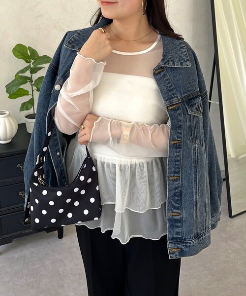 コーデのアクセントになるシアートップス ●ペプラムシルエットで体型カバーもばっちり◎ ●コーデに華やかさをプラスしたいときにオススメの1枚 ●首元は広めでお顔周りもスッキリ見え ●1枚でさらっと着るのはもちろん、 ベストやゆったりとしたニットなどと重ねて 裾をちらっと覗かせるレイヤードコーデもおすすめ シアー/インナー/シンプル -------------------------------------------------------------- 生地の厚さ:薄い 伸縮性:なし 透け感:あり 裏地:なし ポケット:なし 洗濯方法:ご自宅での洗濯可能 -------------------------------------------------------------- ※商品画像はサンプルにて撮影をしておりますので、 実際の商品とは色味や仕様・サイズ等が異なる場合がございますので あらかじめご了承ください。 ※商品のお取り扱いに関しましては、商品に付属の アテンションカード、洗濯ネームをご覧ください。 ※撮影場所やお使いのモニター環境により若干お色味が 異なる場合がございます。 特にロケの撮影では明るく見える傾向にございます。 ※サイト上ではフリーサイズの表記ですが、商品タグには Mサイズと表記されている場合がございます。 その場合、ワンサイズでのご用意となりますのでサイズミス などではございません。詳しいサイズはサイズスペックを ご確認いただきますようお願い致します。 ※サイト上でのカラー名とお届けした商品に記載されている カラー名が異なる場合がございますので予めご了承ください。 <返品・キャンセルについて> ・着用・洗濯後の返品は致しかねます。 ・商品到着後、着用前に商品を確認して頂きますようお願い致します