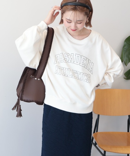 ゆったりシルエットで楽しむ、大人のカレッジカジュアル フロントにあしらわれたカレッジロゴが目を引く、カジュアルながらも落ち着いた雰囲気の一枚です。ゆったりとしたドルマンスリーブが特徴で、肩や腕まわりに程よい余裕が生まれ、リラックス感のある着心地を楽しめます。オーバーサイズのシルエットは体のラインをやさしくカバーしながら、こなれた大人カジュアルスタイルを演出してくれます。シンプルなボトムスと合わせるだけでもバランスよくまとまり、デニムやスカート、ワイドパンツなど幅広いアイテムと相性が良いのも魅力です。やわらかなスウェット素材はデイリー使いにぴったりで、気軽に着られるのもうれしいポイントです。ラフになりすぎず、程よくきれいめな印象もプラスしてくれるため、普段のお出かけやリラックスしたい日にも活躍します。着回しやすく、長く愛用できるカジュアルアイテムです。 透け感[なし] 生地の厚さ[普通] 光沢感[なし] 伸縮性[ややあり] 裏地[なし] ポケット[なし] ※モデル着用画像は、光の当たり具合で色味が違って見える場合がございます。 ※お使いのモニター環境によって商品の色味が違って見える場合がございます。 ●AMERICAN HOLIC ● (アメリカンホリック) 大人の女性の毎日を軽やかで豊かにするブランド。 カジュアルなのにオシャレ、コーディネートも楽。ONにもOFFにも等身大で楽しむオトナの日常着をテーマに、スタイリッシュかつ自然体を楽しめるカジュアルスタイルを提案します。 ▼ 商品のお気に入り登録がおすすめです ▼ 商品ページ内のハートマークをクリック。完売時の再入荷や、最後の1点の通知、お得なお値下げの際の通知を受ける事ができます。 【お知らせ】ページでも通知が確認できます。