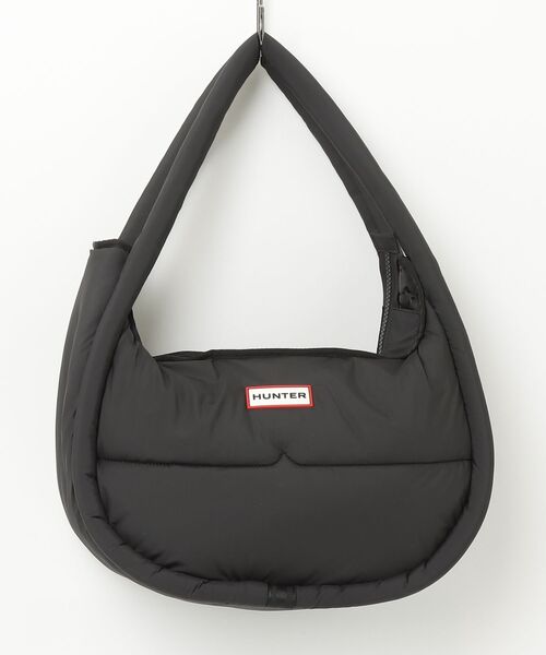 クッションのように柔らかい大容量バッグ 【デザイン】 ・半月型のデザイン ・クッションのように柔らかい風合いが特徴 ・内側には、小物収納に便利なジップ付きのポケットも付き ・フロントにはハンター PVCロゴ 【素材】 ・リサイクルポリエステルを使用 【シルエット・サイズ】 ・500mlのペットボトルはもちろん、A4サイズのファイルも入る大容量 【商品画像について】 ・閲覧環境や撮影環境による光の違いにより、掲載画像は実際の色と異なって見える場合がございます。(商品の色調は白背景の商品単体画像をご参照ください。)
