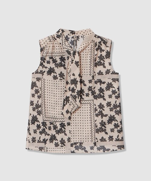 【Spring & Summer Collection 2026】 モノトーンのフラワーと、ドットのスカーフ柄をパッチワークしたようなANAYIオリジナルプリントです。 清涼感のあるスパンローンにプリントした軽やかな素材。 軽やかで上品な印象のノースリーブボウタイブラウス。 首元のボウタイデザインが顔まわりを華やかに演出し、ノースリーブ仕様ですっきりとしたシルエットのため、ジャケットやカーディガンのインナーとしてももたつかず着用いただけます。 同素材のプリーツスカート(品番10261711580)とセットアップで着用するのもお勧めです。 【付属】なし 【裏地】なし 【透け感】なし 【開き・留め仕様】後ろ釦あき 【伸縮性】なし 【ケア方法】クリーニング 【着用感・生地の厚さ】さらりとした薄手のスパンローン ブラック着用 model:175cm 着用サイズ:38 【ANAYIサイズ表】 34サイズ:5号 XSサイズ相当 36サイズ:7号 Sサイズ相当 38サイズ:9号 Mサイズ相当 ・「商品のお気に入り登録」や「ブランドのお気に入り登録」で新商品や再入荷通知、セール通知などのお得な情報を受け取ることができます。 ・照明の関係により、実際よりも色味が違って見える場合がございます。 またパソコン・スマートフォンなどの環境により、製品と画像のカラーが異なる場合もございます。予めご了承ください。