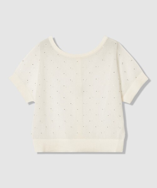 【Spring & Summer Collection 2026】 繊細に透けるシアーな素材にきらりと光るビジュードットをあしらったエアリーな素材。 メタルスタッズのカッティングでビジューの様な繊細な輝きを放ちます。 これからの時期に嬉しいご自宅で手洗い可能な素材です。 緩やかにドロップした袖とふわりと身体から離れるシルエットの2WAYプルオーバー。 コンパクトな着丈で大ぶりにならないドルマンシルエットなので、パンツだけではなく、スカートスタイルにも好相性。 少し広めに開けた衿ぐりから、インナーのタンクやキャミソールのストラップが見えてもポイントに。袖のボリュームは出過ぎず、また透け素材なので軽さも演出。 前後2WAY で着用可能。並べたグラス釦風のカッティングが艶めく釦がポイントになり、スタイリングに合わせて前後お好みで着まわして。 【WEB限定カラー】light grey(92):どんな色とも相性のよいライトグレー。ビジュードットが上品に馴染むので、キレイ目なコーデにもお勧めです。 【付属】なし 【裏地】なし 【透け感】あり 【開き・留め仕様】釦開き 【伸縮性】あり 【ケア方法】手洗い可 【着用感・生地の厚さ】薄い、軽い