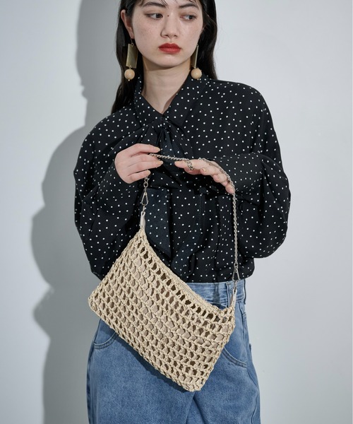 THE YOn 2026 SS Collection 季節感をプラスするメッシュバッグ 【Design】 ドライタッチなペーパー素材のショルダーバッグ。 軽さのあるメッシュデザインが春夏のスタイリングにマッチ。 チェーンショルダーの質感が、ナチュラルな風合いを程良く引き締めてくれます。 コンパクトな見かけながら、500mlのペットボトルなども収納出来る容量も魅力。 【Styling Point】 スタイリングに合わせて持つことで、シーズンライクな装いに仕上げてくれます。 内側のバッグは取り外しが可能で、クラッチバッグやポーチとして使うことも可能。 また、付属のフェイクレザーショルダーとの付け替えで持ち方を選べます。 ----------------------- 裏地:なし 光沢感:なし 透け感:なし 伸縮性:なし ---------------------- 【お買い物をお楽しみいただく為に】 ▼お気に入り登録をオススメ致します。 『♡』をクリックして下さい。 ・《商品のお気に入り登録》で再入荷通知や、ラスト1点の通知、セールの際の通知も受け取ることができます。 ・《ブランドのお気に入り登録》で新作商品や再入荷など、お得な情報を受け取ることができます。 【ATTENTION】 ※画像の商品はサンプルです。 実際の商品と色味、仕様、加工、サイズ、素材等が若干異なる場合がございます。 ※撮影場所やお使いのモニター環境により若干お色味が異なる場合がございます。 ※製品によっては染料の特性上、湿った状態や汗をかいた状態での長時間の放置、または摩擦により、他のものへ色移りする恐れがありますので、着用時にはご注意下さい。 ※風通しがよく、湿気の少ない日の当たらない場所で保管して下さい。 ※また製品加工上、お手元に届く際に匂いが生じる場合がありますが、 ご使用を続けていく事により匂いは軽減されます。