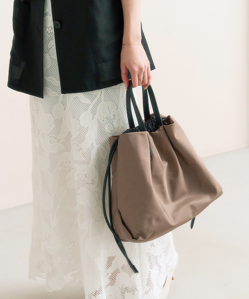 柔らかなフォルムが印象的なミニマルデザインのナイロンバッグ。 マットな質感と立体的なギャザーが上品さを引き立てます。 また、取り外し可能なショルダー紐付きでハンドルと肩掛けの2WAYでお使いいただけます。 軽量かつシンプルなデザインで、デイリーからお仕事まで幅広く活躍します。 *摩擦や濡れた状態での色移りにご注意ください。 *天然皮革を使用した商品の為、商品の仕上がりに個体差が生じます。傷やシワ・色ムラ等につきましても、予めご了承ください。 *照明の関係により、実際よりも色味が違って見える場合があります。 またパソコン・スマートフォンなどの環境により、若干製品と画像のカラーが異なる場合もございます。 *商品の色味は、商品アップ画像をご参照ください。