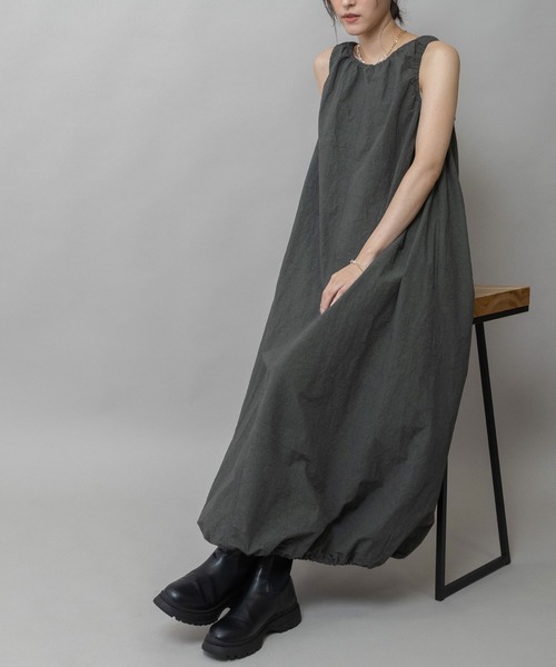 □ Munich 2026 spring & summer collection □ ◆ハリ感と表情ある素材感を生かした1枚で決まる楽ちんバルーンワンピース◆ <MATERIAL> 濃淡ムラのある発色が特徴の麻混タイプライターで経糸80番、緯糸に綿麻混紡の60番使用、染色は各色直接染料を使用しています。 天然素材の持つ豊かな表情が出るように小ロットにて手作業にこだわり、生布に機械的な圧力張力等を加えることなく、精錬染色に長い時間を費やし、乾燥には自然な表情を生かすため天日乾燥にて仕上げました。 ほどよいハリコシがありながら軽い着心地で、細かく入ったシワの凹凸で肌に触れる面が少なく、暑い日でも快適な着心地を叶えてくれる素材です。 製品後ワンウォッシュ+タンブラーを施しています。 <DESIGN> アームホール、衿ぐり、裾にギャザーを入れたふんわりとボリューム感あるワンピース。 アームホールは固定でゴムギャザーを入れていますが、衿ぐりと裾はゴム&ストッパーが付いているので、ギャザーのボリュームに変化を付けられます。 上半身はすっきりと着られるノースリーブにする事で、裾のボリューム感を出際立たせて、甘くなりがちなギャザーデザインに、メリハリを付けました。 しっかりとしたハリと表情のある生地なので、キレイ過ぎずデイリーに使いやすいです。 透け感もないので1枚でさらりと着こなしても、同素材のMN261T26をばさっと羽織るのもおすすめ。 <COLOR> ■ダークグレー:深みのあるダークグレーがモードで都会的な印象のカラー ■ベージュ:やわらかなベージュがナチュラルで抜け感のある印象の軽やかなカラー ■カーキ:落ち着いたカーキが、こなれ感のある季節問わず使えるカラー ■ピンク:ほんのりくすんだピンクが、甘さを抑えつつフェミニンなニュアンスカラー ※光のあたり具合いやパソコンなどのモニター環境によって実際の色味と異なって見える場合がございますので、予めご了承ください。 ※着用商品はサンプルです。サイズ等の仕様に若干の変更がある場合がございますので、予めご了承ください。 ※お取扱いについては、商品についております品質表示、アテンションタグにてご確認ください。 洗濯:洗濯機洗い可 .............................≪INFORMATION ≫............................ ▼商品のお気に入り登録▼ 『♡』マークを押してお気に入り登録して頂いた商品は、セール開催の通知やクーポン発行などのキャンペーンなど、お得な情報をいち早く受けとる事が出来ますので、ぜひご登録ください。