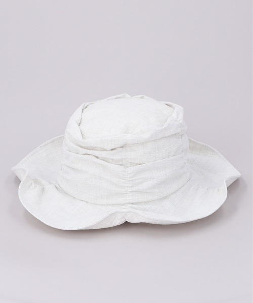 機能性抜群のハット。 ■デザイン たっぷりのギャザーを寄せたクラウンが動きのある表情を演出。さっとかぶるだけでこなれた雰囲気に仕立ててくれます。 ■シルエット 波打つロングブリムは上からみるとお花のようなシルエットに。日焼けしやすい首元までしっかり覆ってくれるので、紫外線対策としても◎。 ■素材 さらっとドライな肌触りのコットン100%生地をセレクト。UVカット機能にご家庭での手洗いが可能と、春夏のデイリーユースにピッタリです。 ■お手入れ方法 洗濯可能。洗うことにより風合いに多少の変化が起こります。お洗濯の際は単独手洗いで洗濯後、形を整え陰干ししてください。 ※サイズ調節スベリ仕様(サイズを小さくする際は、調節テープをまっすぐ引き出してください。逆向きに引っ張るとスベリを破損する可能性がございます。) ※手洗いの際は付属のアテンションを必ずご参照ください。