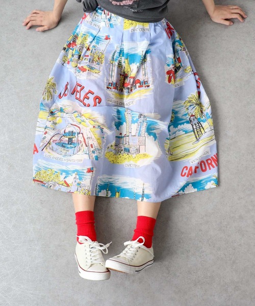 コーデの主役になる、レトロヴィンテージ柄スカート ヴィンテージライクなイラストが目を惹く、存在感のあるロングスカート。 ふんわりと広がるシルエットで、軽やかさと女性らしさを演出します。 コットン素材ならではのやわらかな風合いで、ナチュラルな着心地も魅力。 裏地付きで透け感を気にせず、安心して着用いただけます。 シンプルなトップスと合わせるだけで、コーデが完成する一枚です。 -------------------------------------- 透け感:なし 裏地:なし 伸縮性:なし ケア方法:ドライクリーニング ※お洗濯の際は洗濯表示を必ずご確認ください。 --------------------------------------
