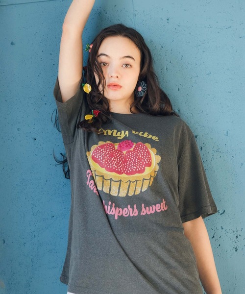甘さをひとさじ添えるイチゴタルト柄Tシャツ 綿100%のやわらかな素材で仕立てた、着心地の良いTシャツ。 フロントにはイチゴタルトを大胆にプリントし、目を惹くデザインに仕上げました。 ゆったりとしたシルエットで、リラックス感のある着こなしが楽しめます。 デニムやスカートと合わせるだけで、コーディネートの主役になる一枚。 カジュアルスタイルに甘さをプラスしてくれるアイテムです。 -------------------------------------- 透け感:なし 裏地:なし 伸縮性:ややあり ケア方法:ドライクリーニング ※お洗濯の際は洗濯表示を必ずご確認ください。 --------------------------------------