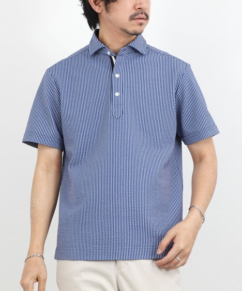 さりげなく差がつく大人ポロ 仕事も休日もこれ一枚で ◆素材 ・綿60%×ポリエステル40%の軽量素材 ・シルケット加工による上品な光沢感 ・カットサッカー特有の凹凸で肌離れがよい ・シワになりにくく、オンオフ兼用しやすい素材感 ◆デザイン ・襟型はシャープな印象のカッタウェイポロ ・下前立てに配色ニットテープを配置 ・ボタンを開けた際にさりげなく覗くアクセント仕様 ・ビジネスシーンにも対応する上品なルックス ・ジャケットインナーとしても映える設計 ◆スタイリング ・テーラードジャケットのインナーでクリーンなビジカジスタイルに ・スラックス合わせでスマートな通勤スタイル ・きれいめチノやデニムと合わせて大人の休日コーデにも ・ボタンを少し開けて配色テープをさりげなく見せる着こなしもおすすめ ー・ー・ー・ー・ー・ー・ー・ー・ー・ー・ー 透け感:ややあり(オフホワイト) 裏地:なし 伸縮性:あり 光沢感:ややあり 生地の厚さ:普通 ー・ー・ー・ー・ー・ー・ー・ー・ー・ー・ー ★気になるアイテムは【お気に入り登録】がオススメです! 入荷情報やクーポン、セール情報が通知されるようになります。 【お取扱い上のご注意】 末永くご愛用頂くために、アテンションタグを必ずご確認の上、着用又はお取り扱い下さい。 ※店頭及び屋外での撮影画像は、光の当たり具合で色味が違って見える場合があります。商品の色味は、スタジオ撮影の画像をご参照下さい。 ※商品画像に関しては出来る限り忠実に表示出来るよう努めておりますが、お客様がご利用のモニターの設定及び特性により、実際の商品と比較し色味に若干の誤差が生じる場合があります。 ※画像の商品はサンプルとなりますので実際の商品と仕様、加工、サイズが若干異なる場合がございます。 ※製品洗い加工の商品は、多少の歪み、シワなどが見られたり、風合いやサイズ等が1枚1枚異なります。汗や雨等で濡れた時や、摩擦により色落ちし、他の衣料を汚すことがありますので(特に濃色のもの)ご注意ください。