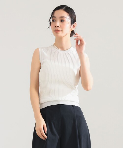 ■デザイン 上品な透け感が軽やかな抜けを演出するノースリーブニット。素材を載せ替えた〈Demi-Luxe BEAMS〉だけの特別なひと品です。 ■コーディネート ジャケットのインナーとしてももたつかず、きちんと感のあるスタイルにすっきりと馴染みます。ワイドパンツやフレアスカートと合わせれば、程良いリラックス感のある着こなしに。 ■ディテール クルーネックの端正な表情が、大人の品格を引き立てます。 ■サイズ コンパクトなシルエットながら、フィットしすぎないワイドリブはボディラインを拾いにくいのが魅力。 ■素材 超極細の和紙とリサイクルポリエステルの撚糸を用い、14ゲージワイドリブ編みで丁寧に編み立てられています。ややハリのある質感が特徴で、肌離れの良いドライタッチな着心地。汗ばむ季節にもおすすめの1枚です。 ■ケア方法 手洗い可(詳細は商品についている洗濯表示タグをご覧ください。) ●同素材のカーディガンもございます 品番:64-15-1390-355 【WHITE】Model:H165 Size:2 【別注BLACK・別注PINK】Model:H171 B80 W58 H86 Size:2 ※光の当たり具合やパソコンなどの閲覧環境によって、実際の色味と異なって見える場合がございます。予めご了承ください。 ※商品の色味は商品単体で撮影した画像をご参照ください。 SLOANE / スローン 自分たちが着ていて、心地良い物を作りたい気持ちからブランドスタート。アイテムは、日本で生産されるものがほとんどで、ストレスを感じることなく着用できるよう立体的な仕上がり。デザインは、ユニセックスで着用することができベーシックなアイテムをメインに構成しています。