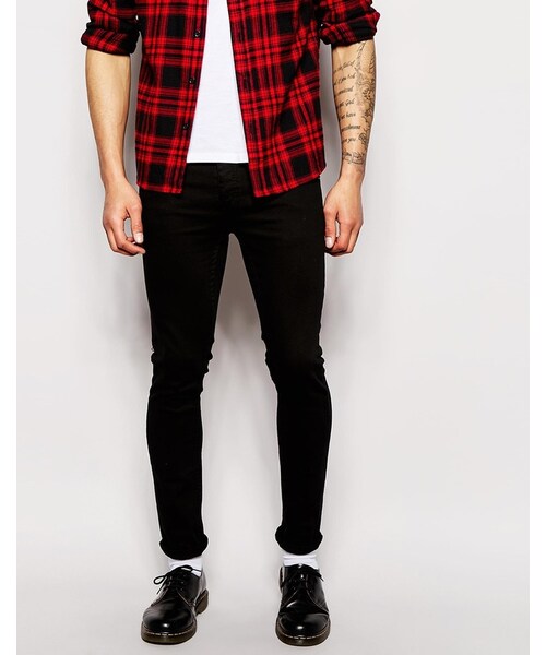 ABOUT ME Body: 99% Cotton, 1% Elastane. Stretch denim Dark wash Regular rise Concealed button fly Narrow leg Skinny fit - cut closely to the body Machine wash 99% Cotton, 1% Elastane Our model wears a 81cm/32" regular and is 188cm/6'2" tall