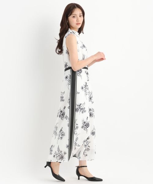 Andemiuオリジナルのスカーフ柄を贅沢に纏う、パネルデザインワンピース。 全体を引き締める額縁のようなパネル柄が、大人のスタイリングに洗練された奥行きをプラスします。 身体のラインを拾わず、すっきりと広がるAラインシルエットは、デイリーから特別な日まで幅広いシーンで活躍。 ノースリーブながら、端正なスタンドネックで露出を抑えた上品なバランスに仕上げました。 カーディガンやジャケットを羽織れば、ホテルでの会食や観劇など、少し改まった席にもふさわしい圧倒的なクラス感を演出。 小物次第で幾通りもの表情を楽しめる、今季を象徴するドラマティックな一着です。 ■アイテムをブラウザでみる | アプリでみる