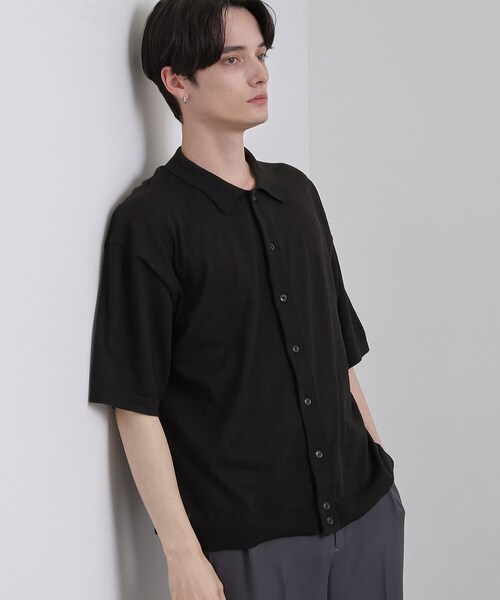 【素材】 ポリエステル100%で仕上げた、ハイゲージのニット素材を使用しています。 天竺編みで仕上げた身頃は、さらりとした滑らかな肌触り。 衿は総針編み、袖口と裾はリブ編みと、パーツごとに編み方を変えることで、ミニマルなデザインの中に豊かな表情を生み出しています。 【デザイン】 Tシャツの気軽さと、ニットの上品さを兼ね備えた、半袖のニットシャツ。 肩を落としたリラックス感のあるシルエットと、編み地が持つ美しい落ち感が、こなれた雰囲気を演出します。 配色の衿が、顔周りを引き締めるアクセントに。 袖口と裾をリブで切り替えることで、ゆったりとしたシルエットながらも、すっきりとバランス良く着こなせます。 一枚で着るのはもちろん、Tシャツなどの上にラフに羽織る、ニットカーディガンのような着こなしもおすすめです。 【推奨サイズ】 02サイズ(M):165~175cm 03サイズ(L):170~180cm 04サイズ(XL):175~185cm ※標準体型を基にした目安になります。 - BRAND CONCEPT - 時代を超えて支持されるトラディショナルなアイテムをベースに、アソビ心とストリートの自由な発想を取り入れ、日本独自のミックススタイルを提案します。 【気になる商品はお気に入り登録をおススメ】 ▼商品のお気に入り登録 完売しているカラーの再入荷通知や、ラスト1点、セールの通知をお知らせいたします。 ▼ブランドのお気に入り登録 新商品や再入荷など、いち早くブランドの情報を受け取ることができます。 ※照明の関係により、実際よりも色味が違って見える場合があります。また、パソコン・スマートフォンなどの環境により、若干製品と画像のカラーが異なる場合もございます。 モデル情報:身長180cm B89 W72 H93 着用サイズ:03(L) 店舗へのお問い合わせ商品番号:C01-15362 ●製品寸法: 02(M):着丈65cm B120cm 袖丈25cm 肩幅56cm 03(L):着丈67cm B124cm 袖丈26cm 肩幅58cm 04(LL):着丈69cm B128cm 袖丈27cm 肩幅60cm 備考:
