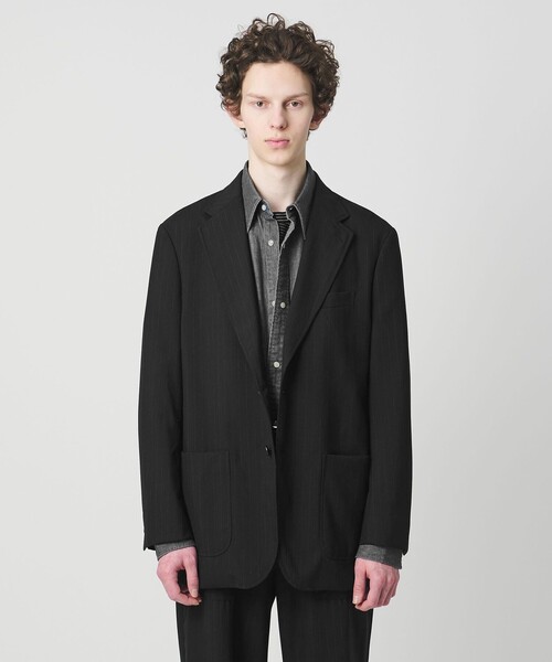 きちんと見えとリラックスを両立した、春夏の万能ジャケット ■デザイン シングル2ボタン2パッチポケットの仕様で、肩肘張らずに羽織れるスマートなデザインです。 衿から前身頃、さらに腰のパッチポケットにステッチを施し、シンプルながら奥行きのある表情に仕上げています。 背抜き仕立てで軽く、袖裏にはストライプの生地を使用し、見えない部分までこだわっています。 製品洗いによって体になじむ自然なシルエットが生まれ、ドレスとカジュアルの中間に上品に馴染む一着です。 ■仕様 ラペル :ノッチドラペル フロントボタン :シングル2ボタン ベント :センターベント 腰ポケット :パッチポケット(フラップ無し) 袖ボタン :3ボタン(先付け) 裏地 :背抜き ■素材 やや太番手の 2/60 梳毛糸を使用したウールトロピカル素材です。 製品洗いを施すことで、ウール素材でありながらナチュラルな風合いが加わり、きちんと感とリラックス感をバランスよく兼ね備えています。 無地とストライプの2パターンをご用意し、スタイルに合わせた選択が可能です。 ■コーディネート 同素材のワイドパンツ(対象品番:11212560001)やベイカーパンツ(対象品番:11142560002)とのセットアップスタイルがおすすめです。 シルエット違いのパンツを合わせることで、モード感のある着こなしからカジュアル寄りのスタイルまで幅広い表情を楽しめます。カットソーやシャツと合わせれば、上品さを保ちながら軽快に着用できます。 ============================ 透け感:なし 伸縮:なし 光沢感:なし ============================ <District (ディストリクト)> ファッションの本質を支えるのは'創造性'と完成度の高いものづくりを目指す'職人精神'。 クリエイティヴィティとクラフトマンシップがテーマのDistrict UNITED ARROWSはファッションの本質的な価値と魅力'を伝え続けます。 【注意事項】 ※商品に「取り扱い上の注意書き」、「洗濯表示」がございます場合は、使用前に必ずご確認ください。 ※商品画像は、光の当たり具合やパソコンなどの閲覧環境により、実際の色味と異なって見える場合がございます。あらかじめご了承ください。 ※商品の色味の目安は、商品単体の画像をご参照ください。 店舗へお問い合わせの際は、全国のUNITED ARROWS各店舗まで下記の品名/品番をお申し付けください。 品名:D W WSD 2PC 2B 品番:11212560000