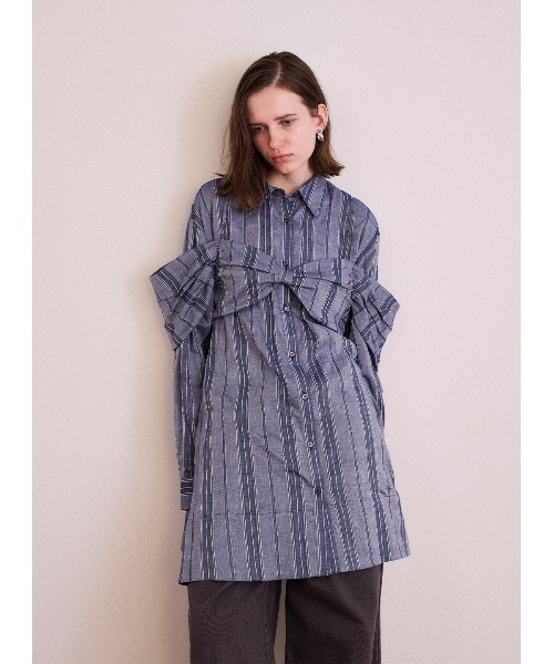 【Fabric】 カラミのストライプ織ガーゼのような柔らかさの綿素材。 【Design】 COELで毎回人気のミニワンピースを今季はシャツ型で展開。 同じ素材で作ったビスチェがついていて、シンプルなシャツワンピースを今季らしくブラッシュアップした印象で着ていただけるのがおすすめポイントです。 ビスチェは大きなリボン型になっていて単品でもシンプルなトップスに合わせて使える便利なアイテムです。 【Styling】 1枚でももちろん、デニムをレイヤードするのも◎ ジャケット合わせでカチッとしたスタイリングでもカッコ良く決まります。 【Treatment】 手洗い:◯ 洗濯機:× ドライクリーニング:◯ ウエットクリーニング:◯ 透け感:なし 裏地:なし 生地の厚さ(ワンピース比較):やや薄手 生地の伸縮:なし 着脱:ボタン ポケット:あり/2つ 【モデル身長】 ブルー:172cm38サイズ着用 【注意事項】※画像の商品はサンプルです。※表示される画像の色は、モニターやブラウザによって実際の商品と若干異なる場合がございます。予めご了承ください。※アイテムサイズは商品サンプルを採寸しているため、実際の商品と多少の誤差が生じる場合がございます。※末永く愛用頂く為に、アテンションタグ・洗濯ネームを必ずご確認の上、着用又はお取り扱い下さい。