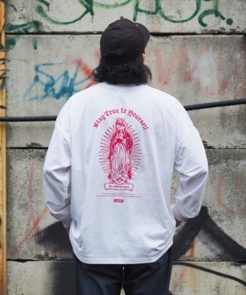 祈りではなく現実を生き抜く力を―― 札束を数えるマリアを大胆に背中へ刻んだ、ストリート感あふれるバックプリントのビックシルエットロンT。 ※モニター・環境等により実際の商品と多少色味が異なって表示される場合がございます。あらかじめご了承ください。 ■Leyline(レイライン)でお買いものをよりお楽しみいただくには ◆商品のお気に入り登録 カートの右のハートをクリックで、完売カラーの再入荷通知、残り1点の通知、セール等値下げした時の通知も受け取ることができます。 ◆ブランドのお気に入り登録 ブランド名をクリックで、新商品や再入荷など、いち早くブランドのお得な情報を受け取ることができます。 是非、ご活用ください。