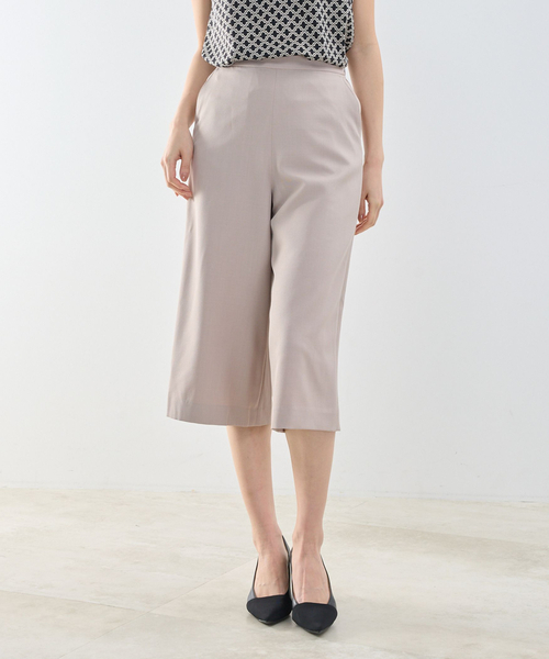 ツイル織りの素材を使用した、ワイドシルエットのクロップドパンツ。短めの丈感はキュロットのような軽やかな印象で、足元に抜け感を演出。身長を問わずバランスが取りやすく、今季らしいクロップド丈のスタイリングを楽しめます。パンプスやフラットシューズとも好相性なアイテムです。同素材のジャケット(30-61-22-739)とのセットアップ着用も可能です。 ・カラー展開はベージュ、ブラウン、ネイビー ・サイズ展開は1(M)9号・3(2L)13号