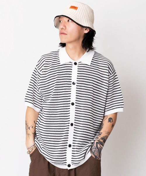 メッシュ編みニットの シャツカーディガン あまく編んだところが メッシュになっている シャツカーデ。 みためはしっかりとした生地感ながら 風通しはしっかり。 タンクトップの上に着たり、羽織ったり。 肌の露出を避けつつ、清涼感を味わえる ボーダー柄のニットカーディガン。 暑い日にこそ体感していただきたいです。 - POINT - シャツ シャツカーデ - SEASON - 春 / 夏 / 秋 - COLOR - ホワイト×ブラック ブラウン×チャコール ベージュ×グレー ブラウン×グリーン ネイビー×ホワイト -PATTERN - ボーダー - SIZE - S / M / L / LL - STYLE - カーデ / シャツ - SITUATION - タウンユースにもオフィスカジュアルにも *気になるアイテムは《お気に入り登録》がオススメ!(ハートマークをクリック) 入荷情報や完売カラーの再入荷通知や、ラスト2点の通知、セールの通知も受けることができます。 *「ブランドのお気に入り登録」 新商品や再入荷など、お得な情報を受け取ることができます! *ご覧のモニター環境や撮影環境により実際の商品と多少色味が異なって見える場合がございます。 ご理解の程よろしくお願いいたします。 ■gym master ( ジムマスター ) 1916年創業のカナダ:ノバスコシア州のファクトリーブランドとして誕生したgym master。高度なニッティング技術により、はじめは地元の警察官や消防士たちのアンダーウェアとして絶大な支持を得て、 やがてアスレチックウェア全般を手がける一大メーカーとして成長を遂げ現在にいたります。カットソーのクオリティーの高さで定評を得る一方、素材にもこだわったアスレチックウェアを表現。ベーシックながらも、素材やブランド特有のカラー表現によっていつも袖を通したくなるような魅力あるアイテムを揃えます。しかし、こだわりが多いがゆえカナダ品は生産日数がかかり、生産量にも限界が生じ、その結果アイテム数が限られてしまいます。そこで生まれたのが日本市場を中心に考えたジムマスター。クラシカルなスポーツスタイルであるスウェットアイテムをタウンユースとして再構築し、バッグや雑貨まで幅広く展開。 ライフスタイルをも発信できるブランドとして成長中。近年、ドラマや映画などでの使用も目立ちます。 洗濯:洗濯機使用可 管理用メモ