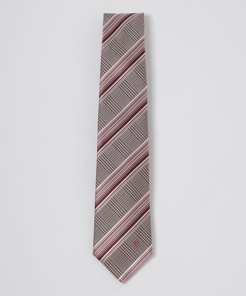 【グレンチェックとレジメンタルを組み合わせた個性的なタイ】 シルク100%を使用したグレンチェックタイ。鮮やかなペーンとグレンチェックを組み合わせることでシックながらも爽やかな印象を与えます。裏地にはジャカードで表現したブランドロゴを配置し、細部までこだわった逸品です。 ※掲載写真と柄の出方が異なる場合がございます。