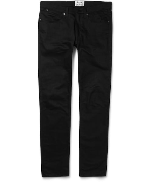 Black jeans equal enduring cool and Acne Studios ' slim-fitting 'Max' style is a smart choice to stock in your year-round roster. Overdyed in a deep hue the label calls 'Stay Cash', they are treated to resist fading for up to 30 washes. Shown here with an Acne Studios jacket and sneakers , OAMC T-shirt and a Miansai bracelet . Black denim Belt loops, five pockets Button and zip fastenings 94% cotton, 5% polyester, 1% elastane Machine wash Designer wash: Stay Cash