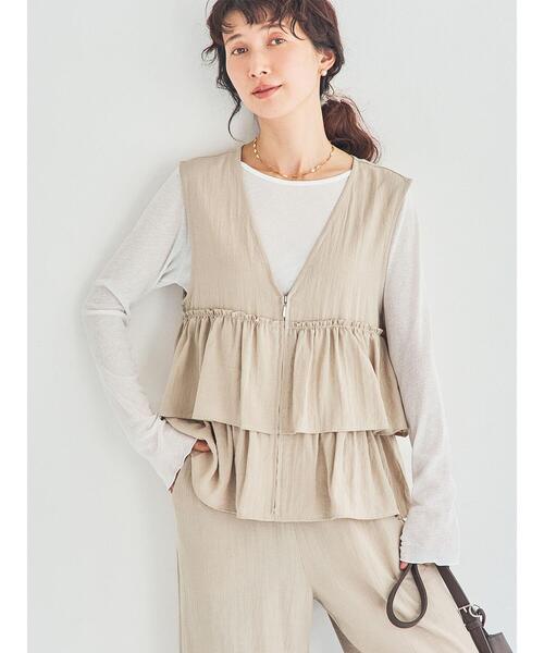 ふんわりと重なるフリルが目を惹くジップデザインのベスト。 深めのVネックですっきりとした印象に仕上げ、前開き仕様でレイヤードもしやすい一枚です。 Tシャツに重ねてカジュアルに、同素材ボトムと合わせてセットアップ風に着こなすなど、スタイリングの幅が広がります。 ※商品画像は、撮影環境やお客様のご利用のPC・スマートフォンのモニター環境などにより実物と色味に差異がある場合がございます。 ★《お気に入り登録》でお得な情報をGET★ ① 商品ページ内のハートマークをクリック! ② 以下通知が受け取れます! 「再入荷」「ラスト1点」「特別セール」etc.. \ブランド、ショップのお気に入りも是非!/