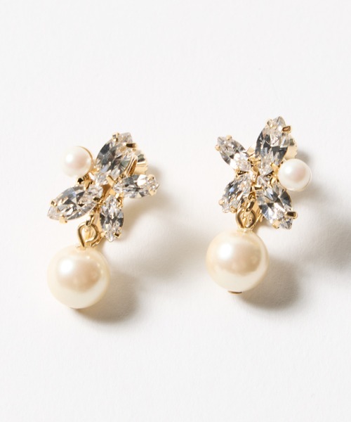 チェコガラスモチーフが煌めくイヤリング。 お花のように配置したチェコガラスにパールを添えてエレガントな雰囲気に。 下部に付けたパールが動くたびに上品に揺れ、顔映りを華やかに演出します。 お揃いネックレス(品番:0353-7-40500)と合わせて付けるのもおすすめです。 ※照明の関係により、実際よりも色味が違って見える場合があります。 またパソコン・スマートフォンなどの環境により、若干製品と画像のカラーが異なる場合もございます。 予めご了承ください。