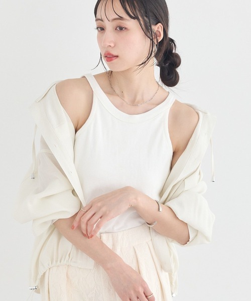 シンプルだからこそ映える美シルエット。 トレンド感のあるアメリカンスリーブが特徴のテレコタンクトップです。肩のラインをきれいに見せるカッティングで、自然なスタイルアップが叶います。 程よい厚みのテレコ素材は肌あたりがやさしく、インナーとしても一枚着としても安心感のある着心地です。 コンパクトなシルエットながら窮屈感が少なく、動きやすさも魅力です。ジャケットやシアーシャツと合わせれば旬のレイヤードスタイルが完成します。 カジュアルからきれいめまで幅広く対応できる万能タンクトップとして、毎日のコーディネートに重宝します。 ※カップ部分のみ、裏あり。 透け感[なし] 生地の厚さ[普通] 光沢感[なし] 伸縮性[あり] 裏地[あり] ポケット[なし] ※モデル着用画像は光の当たり具合で色味が違って見える場合がございます。商品の色味は物撮りの画像をご参照ください。 ● earth music&ecology ● 「私」を、もっと好きになる。 今の時代に寄り添う、 女性らしさをかたちにしたスタイルで、 すべての大人の女性の ときめく毎日を応援します。 ▼ 商品のお気に入り登録がおすすめです ▼ 商品ページ内の「♡」ハートマークをクリック。完売時の再入荷や、最後の1点の通知、コーディネート画像がアップされたとき、お得なお値下げの際の通知を受ける事ができます。 【お知らせ】ページでも通知が確認できます。
