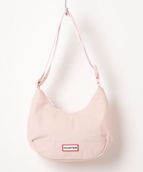 HUNTER/撥水ナイロンのホーボーバッグにシーズンカラーが登場ミニサイズはクロスボディとしての使用もおすすめ! ショルダーでもクロスボディでも持てるホーボーバッグのミニサイズ 半月型のデイリーユースに最適なホーボーシルエットのミニサイズバッグ撥水性のあるリサイクルナイロン、裏地にはリサイクルポリエステルを使用しています。ストラップは長さ調節が可能でショルダーバッグとしてもクロスボディとしても使用できます。 ハンターのシグネチャーであるエンボス加工のトップクリップが付いています。