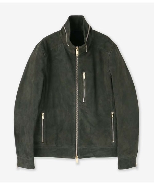 レザーの概念を覆す驚きの着心地を実現した"SUEDE STRETCH LETHER" 高品質なスエードレザーにストレッチ性を加えた、タイトフィットな"SUEDE STRETCH LETHER"。 革の表面はキメが細かく、薄くても耐久性の高いヤギから得られたスエードレザーを使用。ストレッチ性のあるファブリックとボンディングすることで、革本来の高級感を残しつつ、動きやすさを実現しました シルエットは襟高のスタンドカラーデザインで、タイト目なフィット感が特徴。ジッパーを閉めると、しっかり体にフィットし、スタイリッシュなシルエットを演出します。ファスナーには、イタリアのラッカーニ社製の最高級品を採用し、ディテールにもこだわりが詰まっています。 その名の通り、コートなどのインナー使いも可能なため、秋から冬、そして春先まで使用可能なアイテムとなっております。 ※照明の関係により、実際よりも色味が異なって見える場合がございます。 ※ご使用のパソコン・スマートフォンなどの環境により、若干商品と画像の色味が異なる場合がございます。 ※商品のカラーは画像の色味をご参照ください。 ※同一商品でも個体差が生じるため、採寸内容に若干の差が生じる場合がございます。 しっかりと自立した襟もとにはラッカー社のジップがアクセサリーのように輝く。 また、コートなどのインナーとして使用した際も、崩れることいく美しく形を襟の形をキープしてくれます。 視覚的にボリューム感が出やすいスエードレザーですが、脇から腰にかけて切り替えしを内側に入れることで、身体に吸い付くような美シルエットを演出します。 春先と秋口など限られた期間でしか活躍しないライダースを、あえてコートのインナーとすることで真冬でも着用可能。 インナーとしての着心地でも伸縮性の高さからストレスフリーに着用することができます。 ・新感覚ストレッチレザー ・高級感あふれるGOAT LEATHER ・コートのインナーとして使える高い汎用性 ・ファスナーはイタリアのラッカーニ社製の最高級品