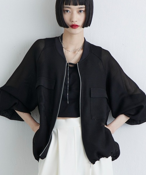 メッシュZIPブルゾン 【ポイント】 ・メッシュとシアー感のある素材を使用。 ・ハリのあるメッシュ素材なのでシルエットがキレイ◎ ・腰回りが隠れるゆとりのあるデザイン。 ・お出かけシーンからカジュアルシーンまで使いやすいZIPデザイン◎ 【素材】 ・薄手で軽い素材を使用。 【スタイリング】 ・マーメイドスカートやワンピースの上からサッと羽織ったキレイめスタイル◎ (オススメはこちら?LUZ1041201A0002 サテンバイアスマーメイドスカート) ・あえてデニム合わせでカジュアルダウンするのもトレンドでオススメです◎ (オススメはこちら?LUZ1061103A0002 切替デザインワイドデニムパンツ) ********************** 透け感:あり 裏地:なし 伸縮性:なし 光沢感:なし 生地の厚さ:薄手 ********************** 【ブランド】 Lui's FEMME(ルイス ファム) 凛とした芯のある女性。 自立した、女性のワードローブをイメージ。洗練されたかっこよさの中に、女性らしさ・かわいさ・セクシーさを持つ。自分自身のスタイル(自分らしさ・個性・生き方・感覚...)を表現できるひとつの手段としての服。肩肘張らない、心地よいリラックス感のあるスタイルを上質な素材、優雅なシルエットで提案。 【注意事項】 ※画像の商品はサンプルです。実際の商品と色味、仕様、加工、サイズ、素材等が若干異なる場合がございます。 ※工場の生産の都合上、納期が変更になる場合がございます。発送日の前後については予めご了承ください。 ※入荷状況により、お客様への発送が店頭販売より遅れる場合もございます。 ※商品を使用前に、タグ等に記載されている「取り扱い上の注意書き」、「洗濯表示」を必ずご確認ください。 ※商品画像は、光の当たり具合やパソコンなどの閲覧環境により、実際の色味と異なって見える場合がございます。予めご了承ください。 ▼商品のお気に入り登録 完売カラーの再入荷通知やセール情報を受け取ることができます。 新商品や再入荷等、いち早くブランドのお得な情報を受け取ることができます。