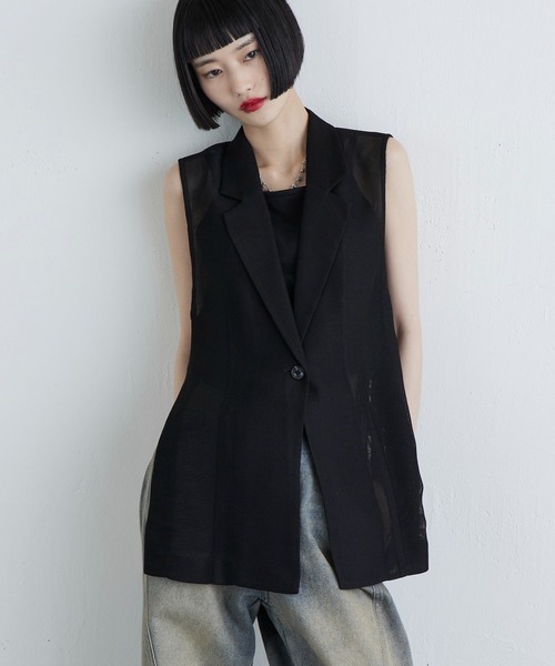 《 Lui's FEMME(ルイス ファム)オリジナル26SSコレクション 》 メッシュベスト 【ポイント】 ・メッシュとシアー感のある素材を使用。 ・ハリのあるメッシュ素材なのでシルエットがキレイ◎ ・腰回りが隠れるゆとりのあるデザイン。 ・お出かけシーンからカジュアルシーンまで使いやすいZIPデザイン◎ 【素材】 ・薄手で軽い素材を使用。 【スタイリング】 ・マーメイドスカートやワンピースの上からサッと羽織ったキレイめスタイル◎ (オススメはこちら LUZ1041201A0002 サテンバイアスマーメイドスカート) ・あえてデニム合わせでカジュアルダウンするのもトレンドでオススメです◎ (オススメはこちら LUZ1061103A0002 切替デザインワイドデニムパンツ) ********************** 透け感:あり 裏地:なし 伸縮性:なし 光沢感:なし 生地の厚さ:薄手 ********************** 【ブランド】 Lui's FEMME(ルイス ファム) 凛とした芯のある女性。 自立した、女性のワードローブをイメージ。洗練されたかっこよさの中に、女性らしさ・かわいさ・セクシーさを持つ。自分自身のスタイル(自分らしさ・個性・生き方・感覚...)を表現できるひとつの手段としての服。肩肘張らない、心地よいリラックス感のあるスタイルを上質な素材、優雅なシルエットで提案。 【注意事項】 ※画像の商品はサンプルです。実際の商品と色味、仕様、加工、サイズ、素材等が若干異なる場合がございます。 ※工場の生産の都合上、納期が変更になる場合がございます。発送日の前後については予めご了承ください。 ※入荷状況により、お客様への発送が店頭販売より遅れる場合もございます。 ※商品を使用前に、タグ等に記載されている「取り扱い上の注意書き」、「洗濯表示」を必ずご確認ください。 ※商品画像は、光の当たり具合やパソコンなどの閲覧環境により、実際の色味と異なって見える場合がございます。予めご了承ください。 ▼商品のお気に入り登録 完売カラーの再入荷通知やセール情報を受け取ることができます。 新商品や再入荷等、いち早くブランドのお得な情報を受け取ることができます。