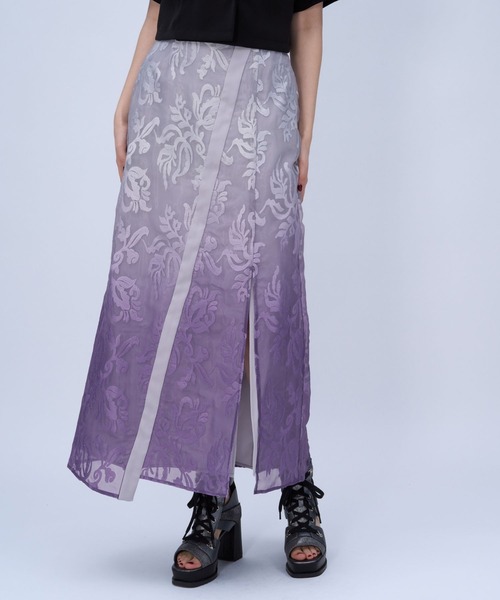 ーーー 存在感のあるジャガードとグラデーションがポイントの モードなシアーIラインスカート ーーー point □シアージャガード素材にグラデーションプリントを重ねた、奥行きのある表情が魅力のナロースカート □ウエストのサイドにはベルトデザインを入れ、2段階でサイズ調節が可能な為、デザインポイントとして効かせつつ、フィット感も自分好みに調節ができる仕様 □ナローシルエットながら、前後にスリットを入れることで足捌きが良く、歩きやすいデザイン □ウエストの後ろ部分はゴムになっており、締め付け感無くストレスフリーな着心地 styling 骨格ナチュラル:あえてゆったりとしたTシャツを選び、スニーカーなどのカジュアルなアイテムでまとめるのがおすすめ。トレンド感のあるスタイリングに。 骨格ウェーブ:ショート丈のシャツを合わせ、スタイルアップ効果抜群のスタイリングに。ネクタイなどの小物でこなれ感をプラス。 骨格ストレート:タイトシルエットのスカートがピッタリ◎トップスもタイトなものを選び、スタイリッシュな印象に。 set item 同素材を使用した、セットアップで着用可能なアイテムのご用意あり。 同素材のパンツはコチラを検索→【661663】 同素材のジャケットはコチラを検索→【661660】 ※加工を施した画像を使用しております。 実物と色味が異なる可能性があるため、色味は詳細後ろにある生地寄り画像を参考にお願いいたします。 あらかじめご了承下さい。