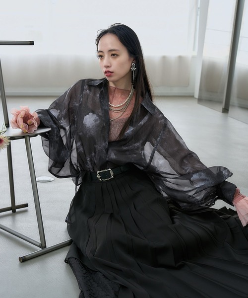 ーーー 水彩画のようなアートフラワーがハレらしい総柄シアーシャツ ーーー point □オーガンジー素材で程よい透け感のシアーシャツ □前後差があり、インでもアウトでも着用しやすい丈感 □ボリューム袖で女性らしい印象 □水彩画のようなアートフラワー柄が上品かつ洗練された雰囲気 □日避けや気温調節がしやすく、夏にも着やすい styling 骨格ナチュラル:羽織りシャツとしてバサッと羽織るとリラックス感が出てオススメ。ワイドパンツやデニムなどカジュアル感のあるアイテムと合わせると大人っぽいカジュアルモードなスタイルに。 骨格ウェーブ:タックインまたはシャツの上からベルトでブラウジングをしてウエストを強調するスタイルが似合います。インナーはキャミソールをあわせ、華奢なアクセサリーをプラスすると女性らしさとシャープさを取り入れられます。 骨格ストレート:ボタンは1~2個開けると首元がスッキリ見えます。ストレートシルエットのスラックスや落ち感のあるマーメイドスカートを合わせ、Iラインを意識すると◎足元や小物はレザー系を合わせると上品なモードスタイルになります。 set item 同柄のワイドパンツ、スカートとセットアップで着用可能。同柄ワンピースのご用意もあります。 セットアップ対応スカートはコチラを検索→【668657】 セットアップ対応ワイドパンツはコチラを検索→【666424】 同柄ワンピースはコチラを検索→【666429】 ※加工を施した画像を使用しております。 実物と色味が異なる可能性があるため、色味は詳細後ろにある生地寄り画像を参考にお願いいたします。 あらかじめご了承下さい。