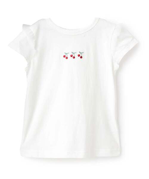 小さなチェリー刺しゅうがかわいいTシャツです。 無地は中心に3つ、ボーダー柄は右胸に1つデザインが入っています。 袖ぐりにチュールのフリルが入っているのも可愛いポイント。 バックネックがゴム仕様なので、着脱もラクラクです。 紫外線対策に役立つUVカット加工をほどこしました。 【透け感】透けない 【生地の厚さ】普通 【伸縮性】あり 【裏地】なし 【ポケット】なし 【アジャスター】なし