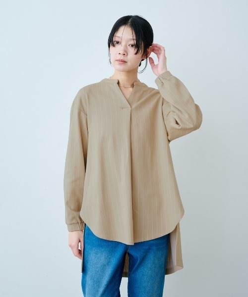 すぽんとかぶれば伸びやかに360度好印象 きちんと見えて伸びやかな着心地が人気の美ノビシャツを、ヒップまですっぽり体形カバーできるチュニック丈で。 ハンサムなピンストライプとVネックで凛と美しく、後ろ姿はバックギャザーで華やかに印象UP。 ※フェリシモの商品には、紐などでくくられている紙タグは付属しておりません。
