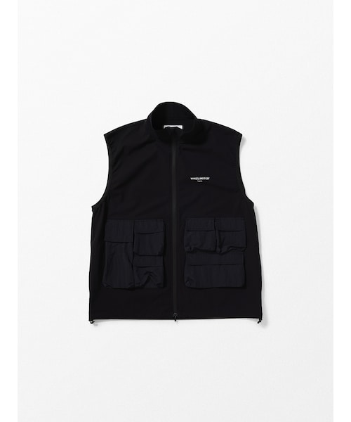 ■マルチポケットのスタンドカラージップアップベスト。高い通気性を持ち軽量で、撥水加工も施された東レの高機能素材「DotAir(R)」を使用。フロントには高強度と撥水、透湿性を備えたリップストップナイロンを使用した、マチ付きのポケットが配置されています。左胸にはワンポイントでブランドロゴをデザイン。春夏の様々なアイテムとのレイヤードを楽しみたい一着となっています。