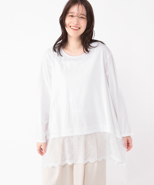 トレンド感のある裾レースデザイン レイヤードも楽しめるレース切り替えカットソー ーーー 【素材】 とろみのあるカットソー生地を使用。 やや厚みがあるので一枚でも透けにくく、着心地が良いのも特徴です。 大人見えの華奢なレースを裾に使用しています。 【デザイン】 一枚でもレイヤードインナーとしても楽しめるレース切り替えカットソー。 お袖やバスト周りのサイズは重ね着しやすいように設定しているので、ごわつくことなく綺麗にご着用いただけます。 普段使いはもちろん、合わせ方次第でセレモニーにも対応可能です。 トップス インナー レース ーーー 【スタイリング】 上にニットやベストなど、裾をポイントにレイヤードできるスタイリングがおすすめ。 ジャケットを着用すると、カジュアルなセレモニーにも対応できます。 ベーシックで落ち着いたカラー展開なので、一枚で着用しても◎