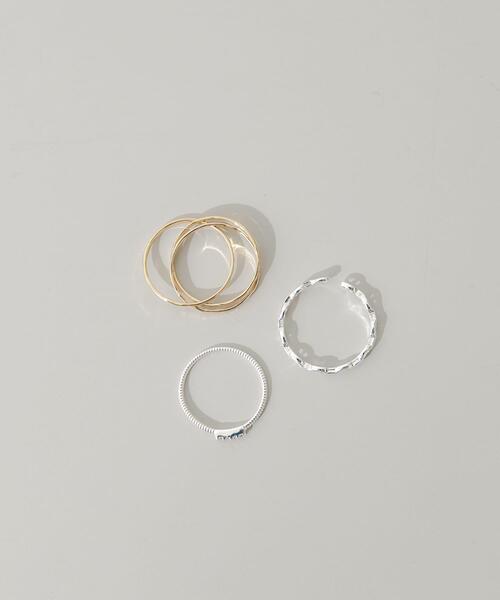 【指先にリズムを刻むリング3本セット】 ●異なるテクスチャーを組み合わせたリングの3点セット ●華奢なラインが手元に繊細な抜け感を与える ●自由な組み合わせで楽しめる 一つひとつに個性が光る、デザイン違いのリングを揃えたセットアイテムです。 3本が重なり合うことで生まれる立体的なシルエットや繊細なディテールが、手元に洗練された空気感を纏わせてくれます。 1本の指に重ねてボリュームを出したり、お手持ちのリングと組み合わせたりと、その日の気分でお洒落の幅を自由自在に広げられます。 【2026 Spring/Summer】【26SS】 ※金属アレルギー症状が出にくいチタン、ニッケルフリー素材、ステンレス等を使用しています。すべての方にアレルギーが起こらないということではありませんので、万が一アレルギーの症状が出ましたら直ちに使用を中止してください。 ※メッキ製品(特に銀メッキ)は変色しやすいため、こまめなお手入れで防止してください。長期放置やスプレー香料などの同時使用は、特にお避けください。 ※メッキ製品は、アレルギー体質の方や体調が低下している方など、かぶれることがあります。肌に異常を感じた時はご使用をお止めいただき専門医にご相談ください。 ※アクセサリーは壊れやすいものです。取り扱いに注意していただき大切にご使用いただけるようお願い申し上げます。 サイズ : 10号, 13号, 9号(詳細商品画像の左から順に) 総重量 : 約2g ※商品画像は、光の当たり具合やパソコンなどの閲覧環境により、実際の色味と異なって見える場合がございます。予めご了承ください。 ※商品の色味の目安は、商品単体の画像をご参照ください。 ▼お気に入り登録のおすすめ▼ お気に入り登録商品は、マイページにて現在の価格情報や在庫状況の確認が可能です。 お買い物リストの管理にぜひご利用下さい。 -