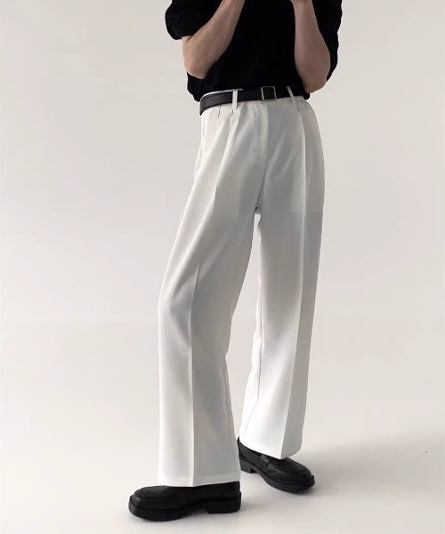 ■DETAIL すとんと落ちるストレートシルエットが美しい、洗練された印象のセンタープレスワイドパンツ。 脚のラインを拾わないゆったりとしたサイズ感ながら、センタープレスが縦のラインを強調し、脚長効果とスタイルアップを叶えます。 さらりとした落ち感のある上品な素材感で、カジュアルからモード、きれいめスタイルまで幅広く対応。 ウエスト周りはすっきりと洗練されたデザインで、タックインスタイルもスマートに決まる一着です。 ■COORDINATE ・黒のトップスを合わせた、洗練されたモノトーンのモードスタイル ・シャツやブラウスをタックインして、ベルトでアクセントをつけたきれいめコーデ ・オーバーサイズのTシャツやスウェットと合わせた、リラックス感のある韓国ストリート風スタイル ・足元にローファーやレザーシューズを添えて、クラシカルな大人カジュアルに ・ジャケットを羽織った、都会的で知的なセットアップ風の着こなし ーーーーーーーーーーー 【色展開】ホワイト/ブラック ーーーーーーーーーーー <着用レビュー> 【スタッフA 165cm/55kg/骨格ウェーブ】 M:ウエストをベルトでマークしてジャストで履けました。とにかくシルエットが綺麗!白でも膨張して見えず、すとんと落ちる素材感のおかげで下半身がスッキリ見えます。 【スタッフB 175cm/65kg/骨格ストレート】 L:腰回りにゆとりがあり、動きやすさ抜群です。センタープレスが入っているおかげできちんと感が出るので、ラフなTシャツと合わせても品よくまとまります。 【スタッフC 182cm/72kg/骨格ナチュラル】 L:僕の身長でもしっかりフルレングスで楽しめる丈感です。ワイドすぎない絶妙な太さなので、きれいめなスタイリングに重宝しています。透け感も気にならず、デイリーに使いやすいです。 ▼POINT ・ストリート ・モード ・韓国ファッション ・ワイドパンツ ・スラックス ・センタープレス ・ストレートシルエット ・脚長効果 ・体型カバー ・オールシーズン ・ユニセックス ・春コーデ ▼商品について▼ ※着用身長によって画像イメージと異なる場合があります。 ※画像の商品はサンプルとなります。実際の商品と色味、仕様、加工、サイズ、素材等が若干異なる場合がございます。 ※商品の色味は、撮影場所や光あたり具合、お使いの端末により色味が違って見える場合がございます 。予めご了承の上ご注文下さい。 ▼お取り扱いについて▼ ※着用またはお取り扱いの際は、アテンションタグや洗濯ネームを必ずご確認ください。 ※濃いカラーの商品は素材の特性上、汗や水による色移り、色落ちの可能性がございます。 ※明るい色の下着やバッグ、その他アイテムとの摩擦、色移りにご注意ください。 《 お知らせ 》 ▼商品のお気に入り登録 お気に入りアイテムの値下げ・再入荷・在庫1点などの通知を受け取ることができます。 ▼ブランドのお気に入り登録 新商品や再入荷、セール、クーポン配布などお得な情報を受け取ることができます。