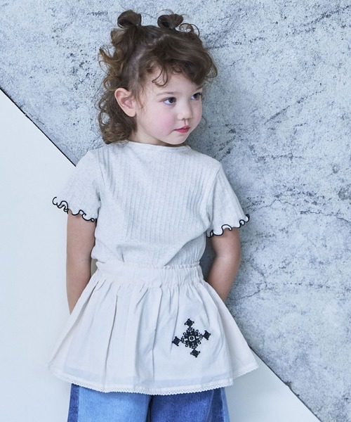 ふんわりシルエットに、クロスステッチが映える1枚! ■デザイン ふんわり広がるシルエットがかわいい、存在感たっぷりのスカートです。 裾のレース使いとクロスステッチ風のポイントが、さりげないアクセントになります。 甘さのあるデザインながら、シンプルなトップスにも合わせやすい1枚です。 参考サイズ: S(~120cm) M(~140cm)※ウエストゴムの調節ボタンを外すことで、大人も着用可能です。 ■スタイリング シャツやコンパクトなトップスを合わせて、スカートを主役にした着こなしがおすすめです。 デニムパンツやレギンスに重ねて、レイヤードスタイルを楽しむのもかわいく決まります。 カジュアルにもガーリーにも合わせやすく、デイリーに活躍します。 ■生地感 軽やかでやわらかな風合いのコットン素材です。 ふんわりとしたシルエットが出やすく、見た目にも涼しげな印象です。 ++++++++++++++++++++++++ 透け感:少しあり 伸縮:なし 厚み:やや薄手 ++++++++++++++++++++++++ ※ネームタグ付き ※ウエストゴム(調整可) ※モデルが着用している画像は、照明や日光などの撮影時の環境により実物と異なる色味になる場合がございます。 商品単体の平置き画像を実物に近いお色味になるよう努めておりますので、お色味のご確認は平置き画像をご参照くださいませ。 ※お使いのモニター環境によっても実物のお色味と異なって見える場合がございます。予めご理解の程よろしくお願いいたします。 ハートマークをポチッ! 気になる商品はお気に入り登録をお忘れなく! 商品のお気に入り登録をすると... [再入荷][残り1点][セール情報]を受け取れます。 MARKEY'Sをお気に入り登録すると... [新商品][再入荷]の情報をいち早く受け取れます。