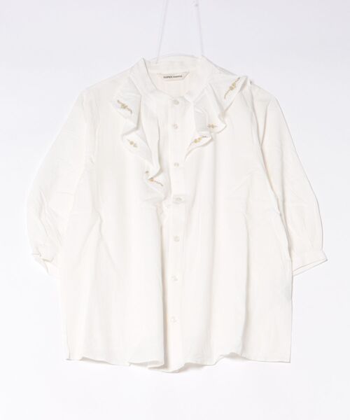 柔らかくしなやかな風合いが特徴のカルゼのブラウス。 フロントにはドレープフリルをアシンメトリーに施しています。 縁は単色系のお花の刺繍で上品にまとめました。 後ろ裾には3段のタックを施し、シンプルながら印象的なブラウスです。 お手入れ:手洗い 店舗へお問い合わせの際は、下記の品番をお申し付け下さい。 [品番:34150261]