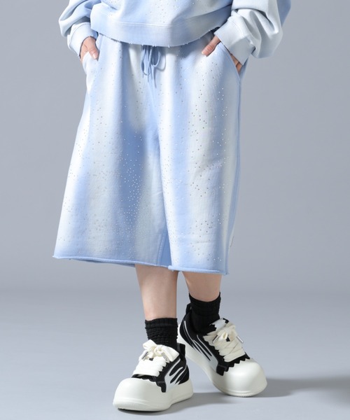 ムラ感のある染め加工を施したスウェットショーツに、全体的にラインストーンを散りばめた存在感のある1本。 程よく色ムラのある独特な風合いがヴィンテージライクな雰囲気を演出しており、シンプルながらも個性のあるデザインに仕上がっています。 ゆったりとしたリラックスシルエット、ウエストはドローコード仕様でラフに着用できるのもポイント。 ストリートスタイルやカジュアルコーデにはもちろん、同デザインの(品番:787-6132248)のスウェットトップスと合わせたセットアップスタイルもおすすめです。 ※モデル着用の撮影画像は、撮影場所や光のあたり具合などにより色味が違って見える場合がございます 。 また、お客様のお使いのPCのモニター環境などにより色味が違って見える場合がございます。 ※商品の色味は、商品画像をご参照ください。 【FR(13)NDS/フレンズ】 「恐怖」・「不吉」を連想させる一方で「パワーの象徴」・「もう1つ上の世界」など、様々な感情、表情を持ち合わせた未知の 数字。それが(13)である。 互いの個性を認め合い、常に新しいものへと進化を続け、高め合える仲間でありたい。 そんな思い込めた「FR(13)NDS」。 無数の仲間のフィルターを通して見えてくる新しいもの・コトを共感し共有することにより自由に表現し合えるブランド。 素材やシルエットへのこだわりと共に、ディティールやプリントなど遊び心も取り入れ、様々な感情や表現を持った服(仲間)。 【お買いものをお楽しみいただく為に!】 ▼商品のお気に入り登録 完売カラーの再入荷通知や、ラスト1点の通知、セールの通知も受け取ることができます。 ▼ブランドのお気に入り登録 新商品や再入荷など、いち早くブランドのお得な情報を受け取ることができます。