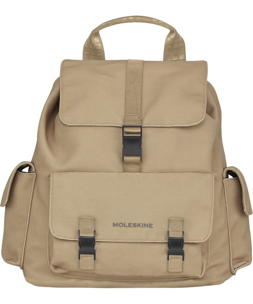 ノートブックのレガシーを受け継いだ、モレスキンのスタイリッシュなロールトップ バックパック。 ポケットサイズのモレスキンノートブックやダイアリーを収納できるコンパートメントとパッド付きのデバイス用スリーブ、 メガネや筆記用具などの小物を入れるスペースを備えています。 外側に、コットンの風合いが優しい素材を使用、収納する物に合わせてしなやかにフィットします。 そしてストラップは調節が可能。移動も快適です。実用的かつシックでエレガントなデザイン。 デイリー使いにも特別なお出かけの時にもぴったりの、軽量バックパックです。 ソフトな外側部分とインナーの裏地には、100%リサイクル素材を使用しています。 内側: ドローストリング付きのメインコンパートメント ×1、バックル開閉 デバイスの持ち運びにも便利: パッド入りノートパソコン用スリーブ (28 x 31.5 cm、/ 11.01 x 12.40 インチ) モレスキンノートポケット: 大切なメモを記したポケットサイズのノートブックを収納できます 安全に小物を収納できるジップアップポケット×1、ペンホルダー付きオーガナイザー×1、パッド入り眼鏡用ポケット、名刺ホルダー 裏地:リサイクルポリエステル 100% 外側: 調節可能なバックパックストラップで移動中も快適 ヒートエンボス加工でロゴのモノグラムをほどこしたウェビング フロント部分に モレスキンのロゴ マグネット開閉式アウターポケット×2: サイドポケットはモレスキンポケットノートブックがフィットするサイズ フロントポケットはモレスキンラージノートブックがフィットするサイズ、バックル付き 外側シェル部分:リサイクルポリエステル 100% サイズ:32 x 39 x 15.5 cm (12.59 x 15.35 x 6.10 インチ) 容量:14 L