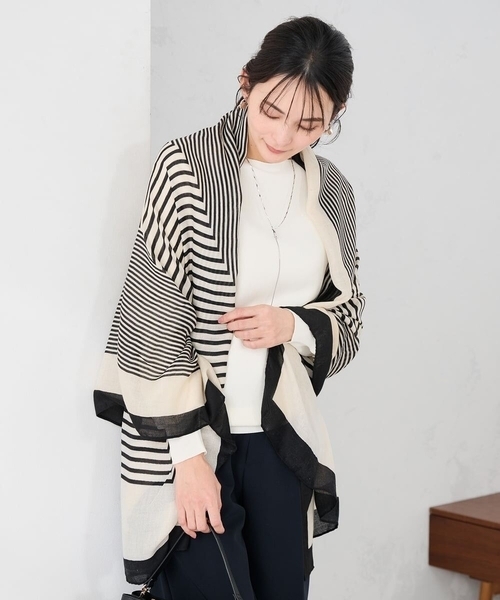 ◆纏うだけで洗練見えする大判ストール◆ ■デザイン 大胆なボーダーパターンが印象的な大判ストール。 コーディネートのアクセントになるモダンなボーダー柄です。 肩掛け・巻き・羽織りなどアレンジが自在。 モノトーン配色でコーディネートに取り入れやすく シンプルな装いにさっと羽織るだけで洗練された雰囲気を演出します。 軽やかな素材感でロングシーズン活躍間違いなし。 持っているだけでスタイリングの幅が広がり、冷房対策や季節の変わり目にも便利です。 -------------------- ≪お気に入り登録機能の使い方≫ ■商品のお気に入り登録(ハートマークをクリック) 再入荷通知や値下げ等、お得なご案内を受けることができます。 -------------------- ※商品画像は、光の当たり具合やパソコンなどの閲覧環境により 実際の色味と異なって見える場合がございます。 商品の色味の目安は商品単体の画像をご参照ください。