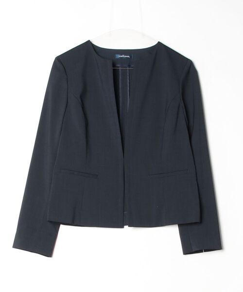 きちんと感を更新する、洗えるウール混セットアップお仕事シーンを軸に信頼感と品格を備えた着こなしが叶う、セットアップ対応ノーカラージャケット。通勤はもちろん、きちんと感が求められる顔合わせや入卒式などのオケージョンコーデにも対応できる一着です。ウール混ならではの上質な表情を持ちながら、自宅で手洗いできるウォッシャブル仕様で、忙しい毎日に頼れる存在。また、防しわ性とストレッチ性を備え、長時間の着用や移動の多い出張などでも快適に過ごせます。同素材のボトム(品番:51218350)(品番:51318350)とのセットアップでの着用で、よりきちんと感のある装いに。ビジネスからオケージョンシーンに相応しい定番ネイビーをご用意。 ■素材 ウールとポリエステルを混紡した、機能性と上質感を両立したウォッシャブル素材を使用。防しわとストレッチ性を備えたウール混とは思えない扱いやすさで、日常使いしやすいのも魅力です。細かなピンヘッド織りにより、無地見えしながらも表情のある仕上がり。ネイビーはあえて糸の濃淡をはっきりさせず、無地ライクに見える配色にいたしました。 ■デザイン 上品で女性らしい印象を演出するノーカラ―ジャケット。フロントはミニマルなワンホック仕様にすることで、インナーのデザインや柄を引き立て、コーディネートに品格をプラスします。程よくウエストをシェイプした設計で、きちんと感がありながら単品使いでもきれいに決まるシルエットに。一重仕立ての軽やかな着心地で、ロングシーズン着用可能です。裏地なし。ポケットあり。 ■シーズン 2026年春夏商品