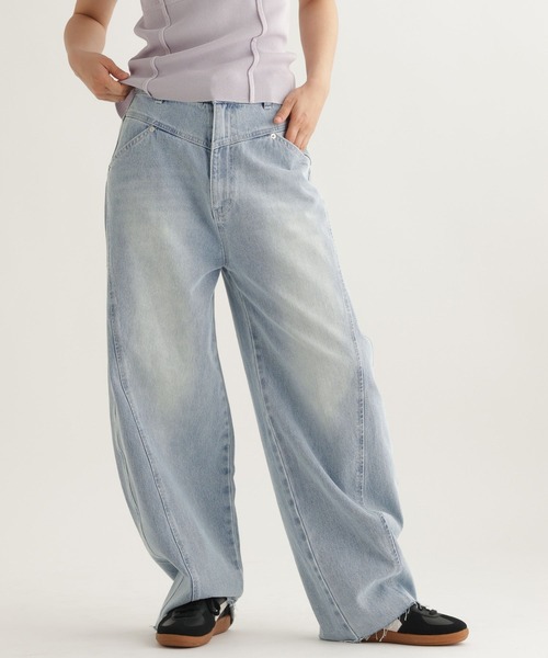 シンプルながらスタイリングに変化を 立体的なフォルムのカーブシルエットが魅力のデニムパンツ ーーー 【素材】 程よい厚みのデニム素材を使用。 履き込むほどに馴染み、日常に寄り添う風合いに。 【デザイン】 立体的なフォルムが印象的なデニムパンツ。 フロントの切り替えとダーツによって生まれる柔らかなカーブシルエットです。 身体のラインを拾いすぎず、自然な立体感が静かな存在感を作ります。 季節を問わずに長くご愛用いただけます。 ーーー 【スタイリング】 コンパクトなカットソーやショート丈のトップスと合わせることで、シルエットの立体感を活かした今らしいバランスに仕上がります。