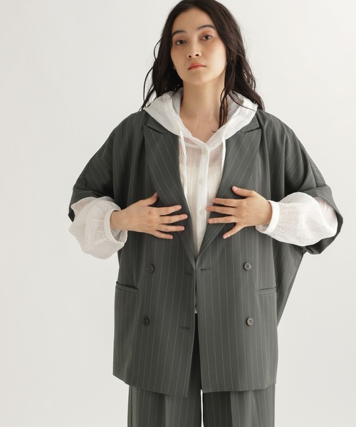 日常の装いに程よいきちんと感を モードな印象のハーフスリーブジャケット ーーー 【素材】 さらりとした質感の素材を使用。 季節の変わり目にも取り入れやすいアイテムです。 【デザイン】 程よくゆとりのあるシルエットに仕立てたハーフスリーブのダブルジャケット。 きちんと感のあるテーラードデザインに、軽やかな抜け感をプラスした一着です。 さっと羽織るだけでスタイリングが引き締まり、Tシャツやタンクトップなどラフな着こなしでも自然と大人っぽい印象に仕上がります。 ーーー 【スタイリング】 同素材の「さらりストライプショートパンツ」と合わせれば、セットアップならではの統一感のあるスタイルが完成。 足元をサンダルやスニーカーで外すことで、dailyCLIPらしいリラックスしたバランスが楽しめます。 デニムやワイドパンツと合わせたカジュアルスタイルやワンピースの上に軽く羽織るレイヤードもおすすめです。