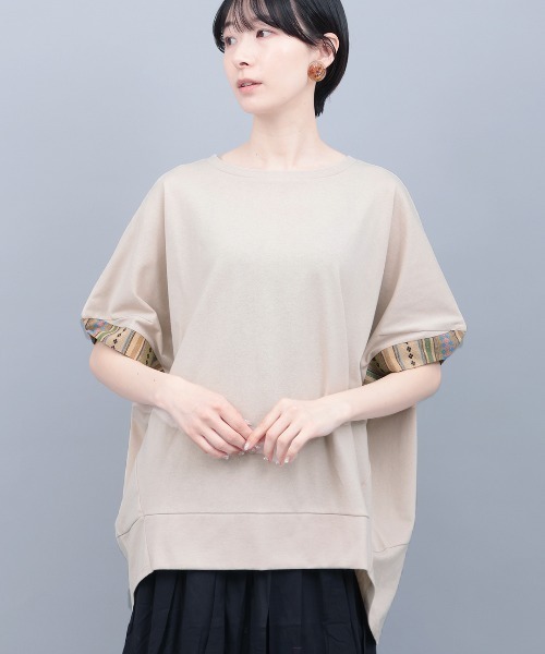 ゆるっと着るだけで旬顔♪抜け感漂う大人のドルマンプルオーバー ■デザイン 丸みのあるコクーンシルエットが女性らしく、リラックスムード漂うトップス。 袖口とバックセンターにはジャカード柄生地を切り替え、さりげない表情と奥行きをプラスしました。 ぽわんと立体感のある袖デザインが、シンプルながらも存在感のあるアクセントに。 前後差のある裾ラインで、気になるヒップ周りを自然にカバーしてくれるのも嬉しいポイント。 ドルマンスリーブならではのゆったり感で、抜け感のある大人カジュアルが完成します。 ■サイズ感 レディースフリーサイズ たっぷりとしたオーバーシルエットで、ポンチョ感覚のリラックスした着心地。 体型を選ばず、ストレスフリーに着用できます。 ■素材感 柔らかさのある綿入り素材を使用し、さらっと快適な着心地。 ロングシーズン活躍する、程よい厚みとナチュラルな風合いが魅力です。 ■スタイリング 総柄スカートと合わせて、こなれ感のあるエスニックスタイルに。 コクーンパンツやワイドパンツと合わせれば、ルーズシルエットの大人カジュアルコーデが完成。 デニムと合わせたシンプルコーデでも、デザイン性でしっかりおしゃれ見えする一枚です。 ■カラー ベージュ/ブラック/ネイビー/レッド ■お手入れ 液温は30℃を限度とし、手洗いができます。 --------------------------------- 透け感:透けない 伸縮性:あり 裏地 :なし 光沢 :なし 生地の厚さ:普通 ポケット:なし --------------------------------- 【TITICACAのお買いものをお楽しみいただくために!】 ▼商品のお気に入り登録 完売カラーの再入荷通知や、ラスト1点の通知、セールの通知も受け取ることができます。 ▼ブランドのお気に入り登録 新商品や再入荷など、いち早くブランドのお得な情報を受けることができます!